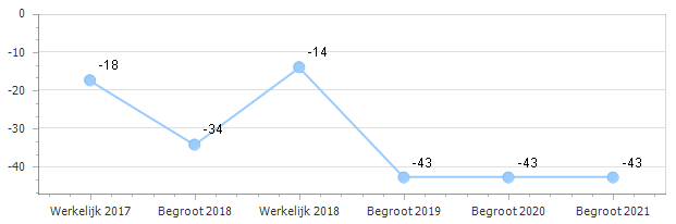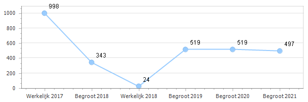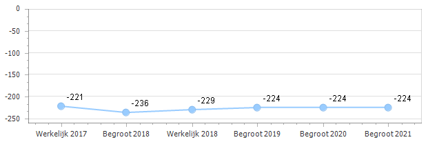 Het nadelige saldo van de jaarrekening 2018 is afgerond € 931.000,-. Eerder werd een batig saldo van € 33.000,- verwacht. Daardoor ontstaat een resultaat dat € 33.000,- minder nadelig is dan eerder verwacht, namelijk € 964.000,-. Het negatieve saldo wordt hier als een inkomst opgenomen om de exploitatie 2018 precies op € 0,00 te laten lopen.